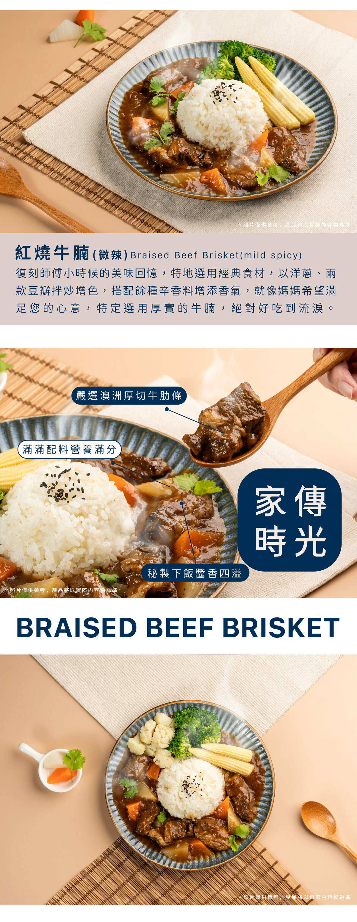 復刻師傅小時候的美味回憶,特地選用經典食材,以洋蔥、兩款豆瓣拌炒增色,搭配餘種辛香料增添香氣,就像媽媽希望滿足您的心意,特定選用厚實的牛腩絕對好吃到流淚!