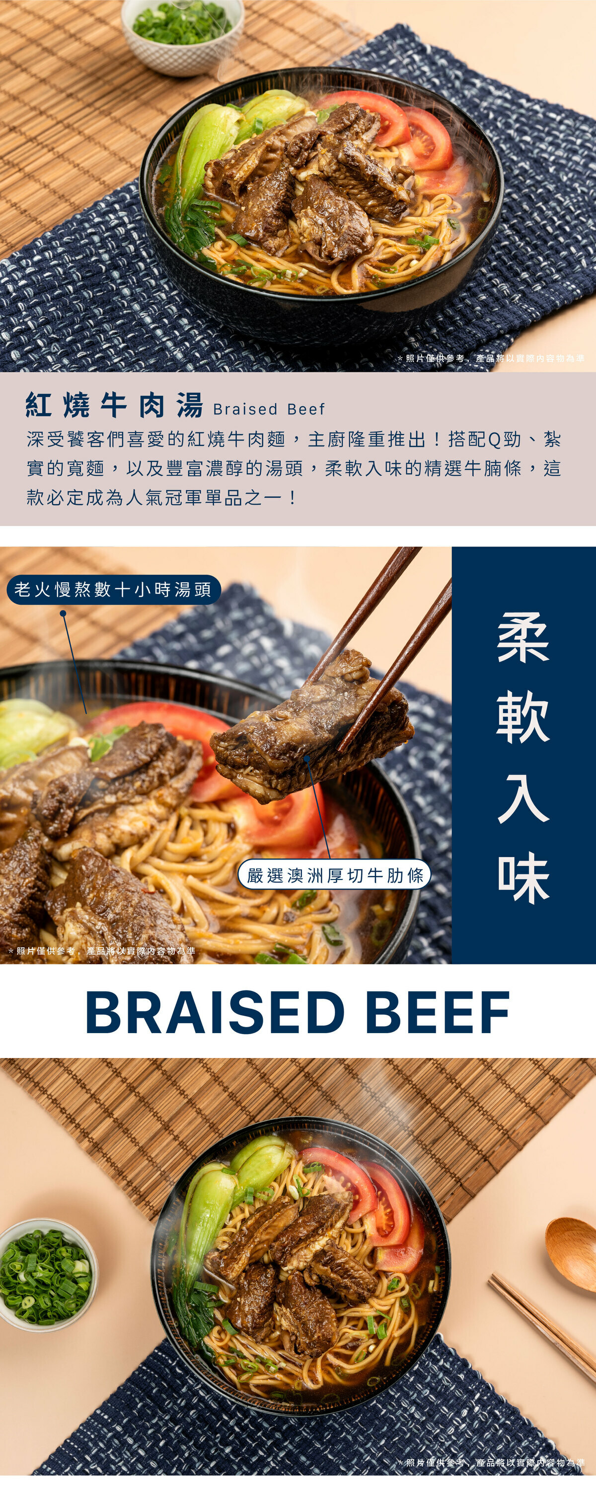深受饕客們喜愛的紅燒牛肉麵,主廚隆重推出!搭配Q勁、紮實的手工麵條,以及豐富濃醇的湯頭,柔軟入味的精選牛腩條,這款必定成為人氣冠軍單品之一!