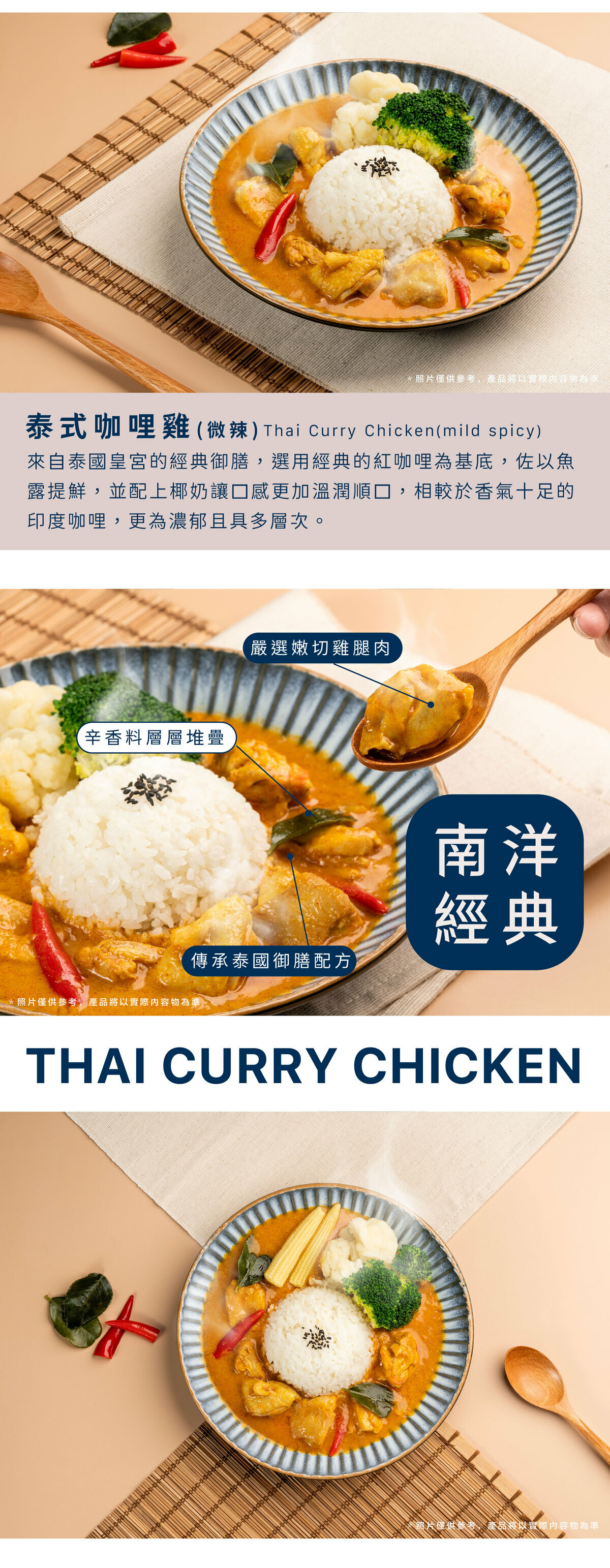 來自泰國皇宮的經典御膳,選用經典的紅咖哩為基底,佐以魚露提鮮,並配上椰奶讓口感更加溫潤順口,相較於香氣十足的印度咖哩,更為濃郁且具多層次。